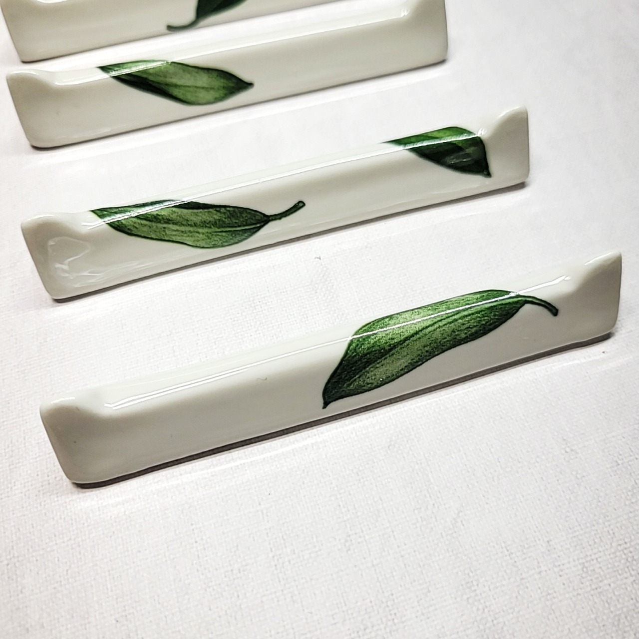 イタリアの転写紙を施した、シンプルで可愛いカトラリーレスト。5個セットでの販売です。