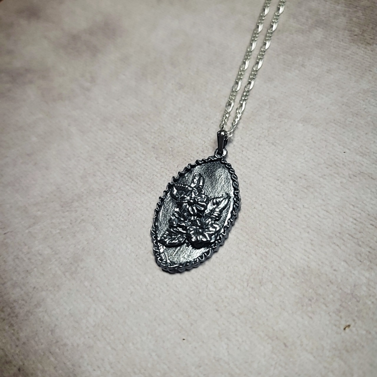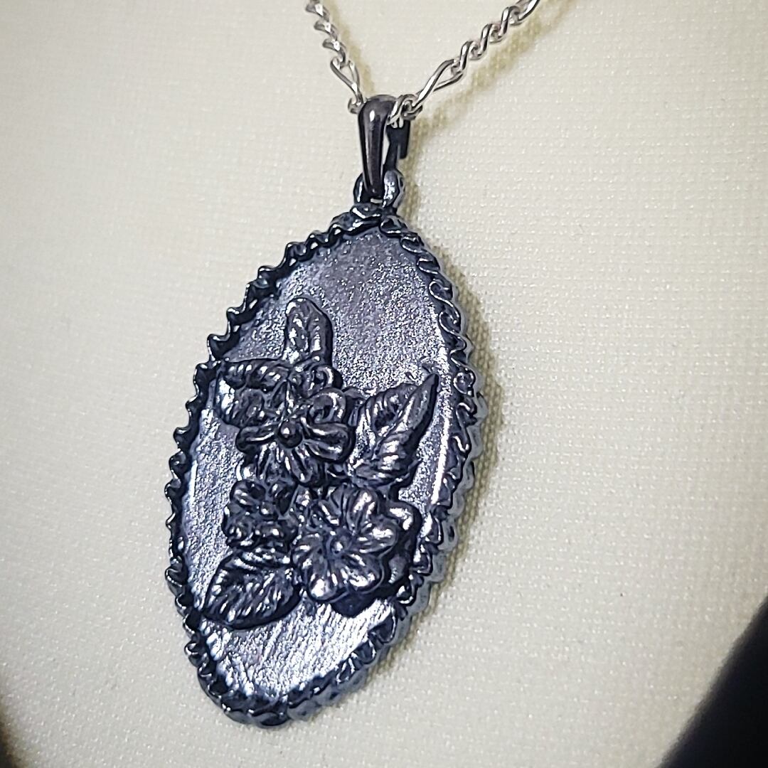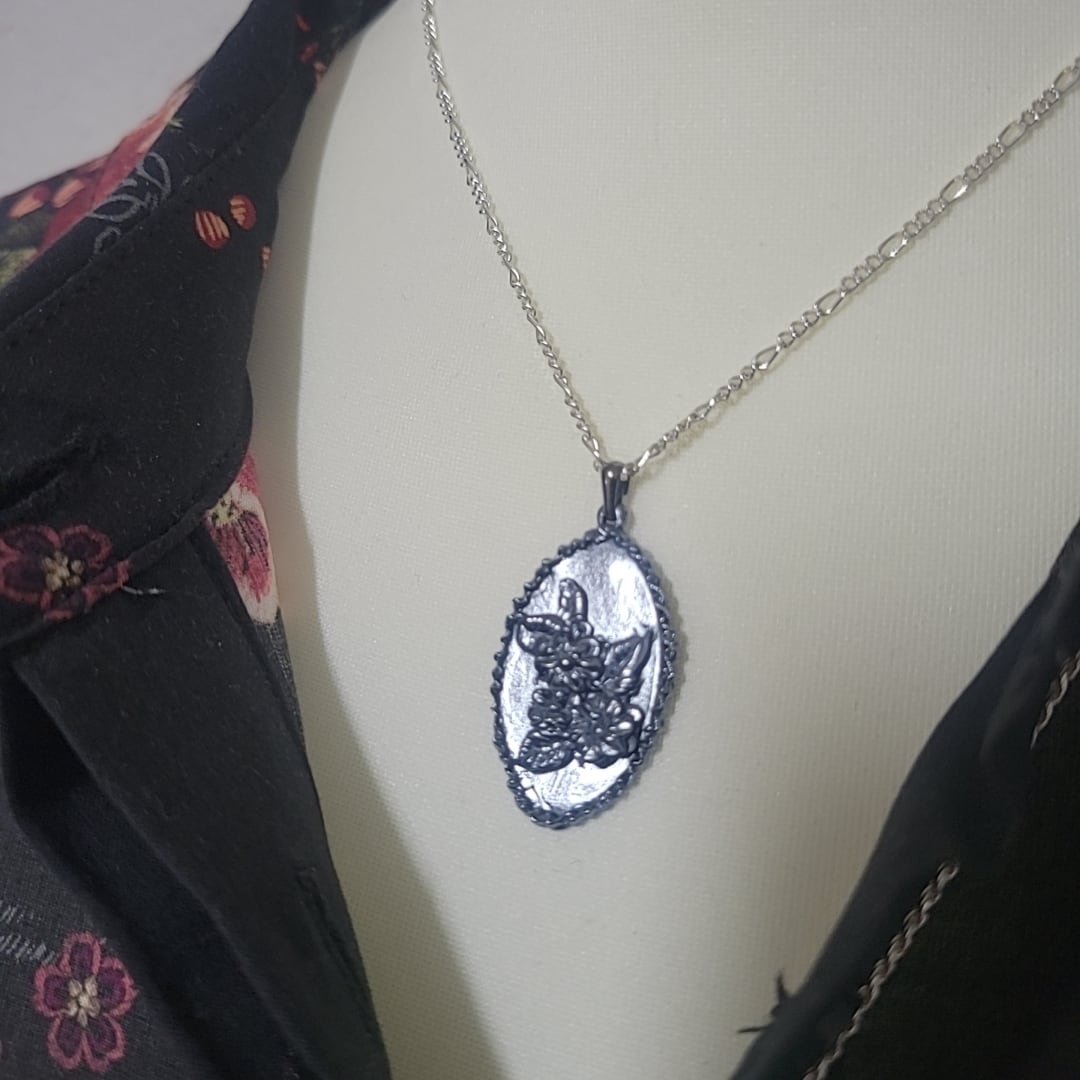 刺繍を施したような純銀のペンダント。