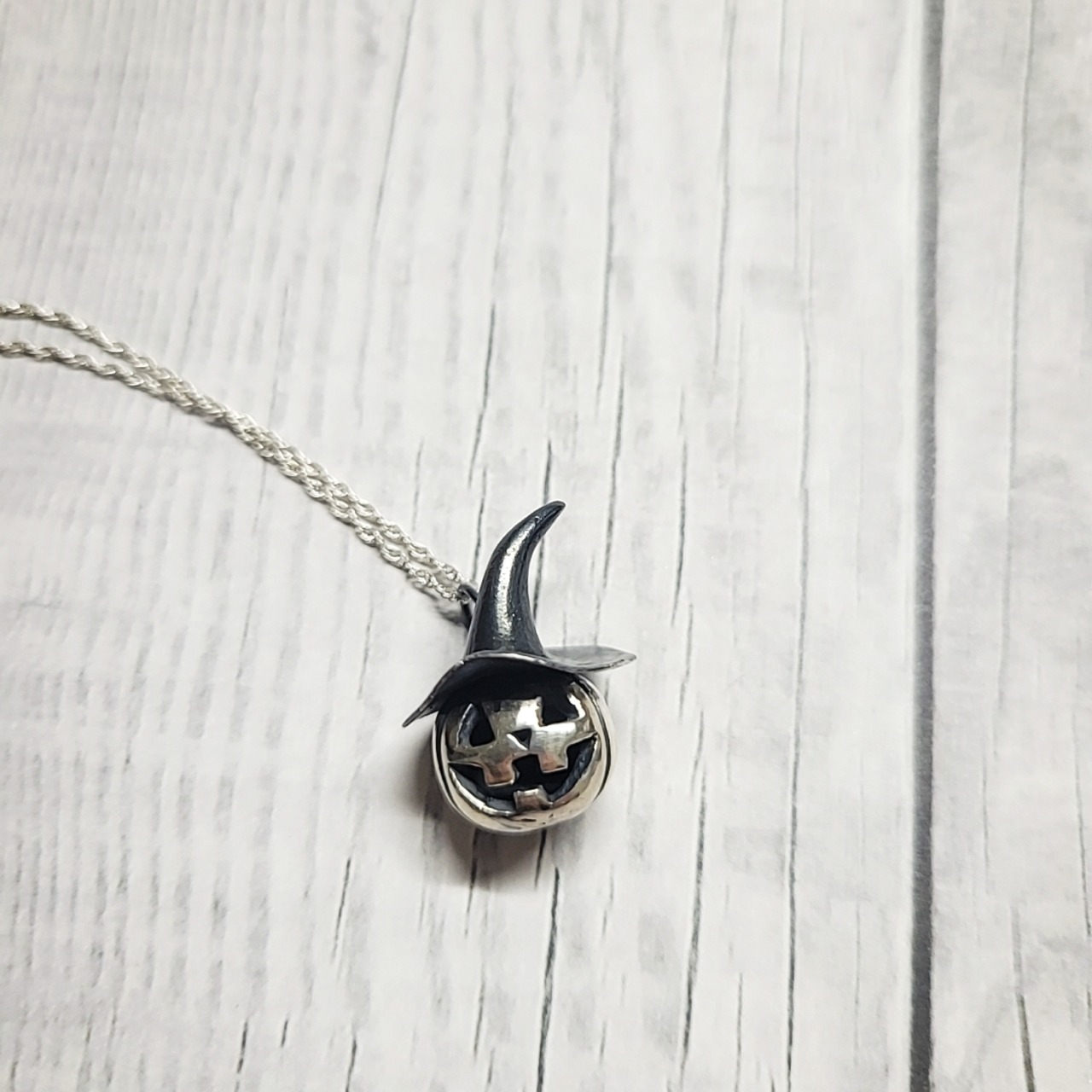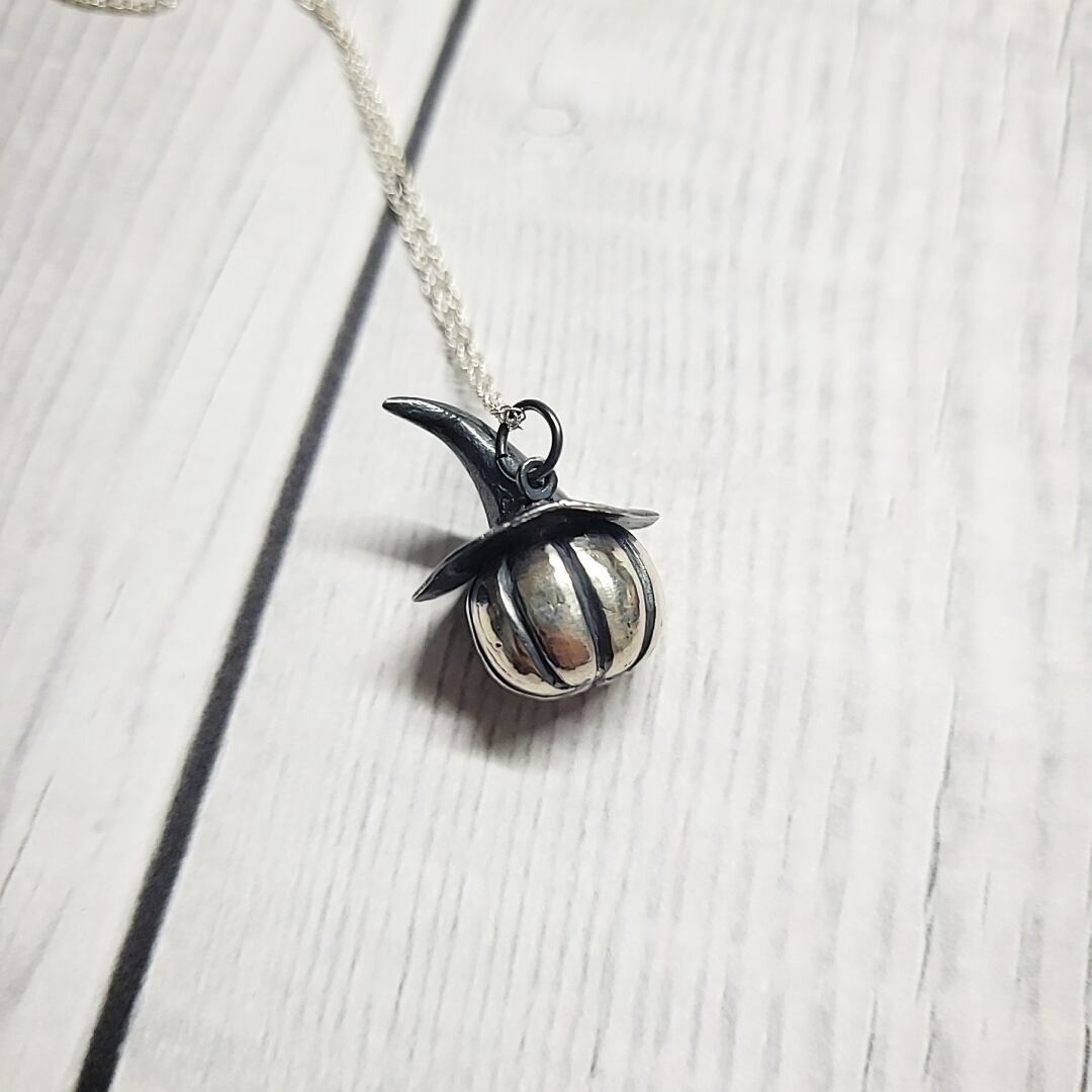 純銀粘土でできたハロウィンの可愛いカボチャのペンダント。